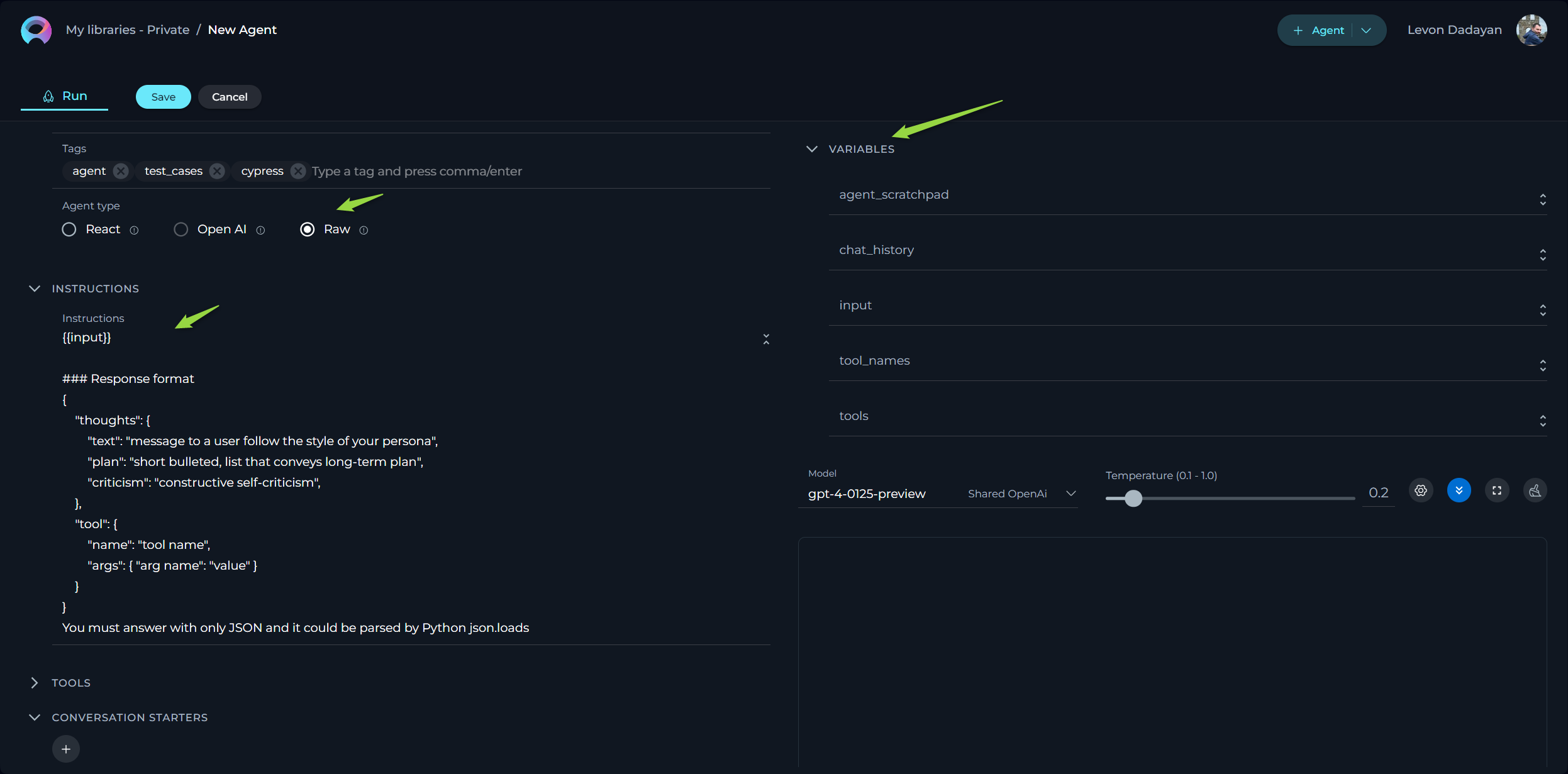 For the Raw agent type, adhere to these specific guidelines to ensure the agent operates correctly: