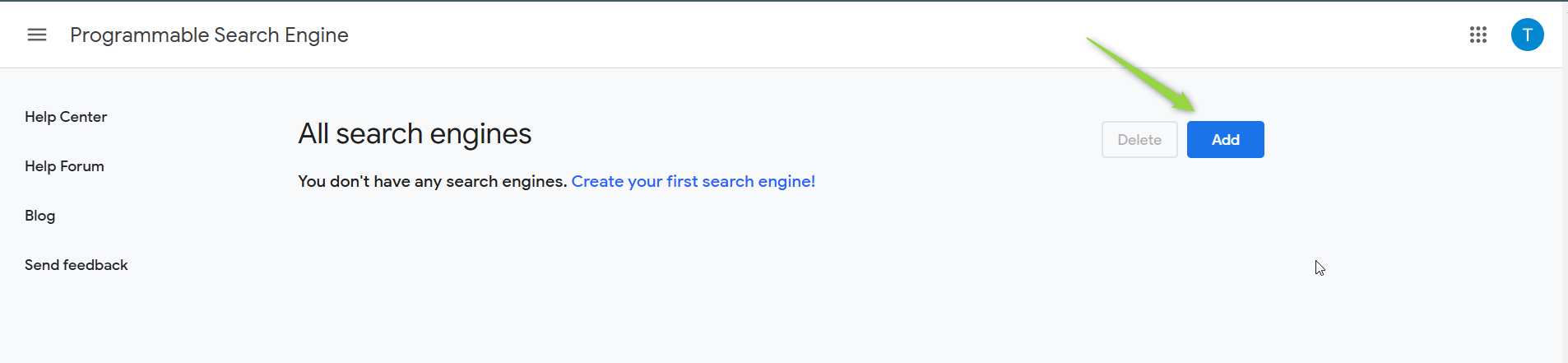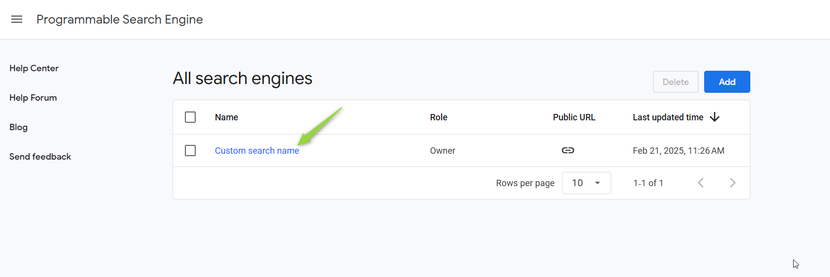 Create a New Search Engine: Click the "Add" button to create a new Custom Search Engine.