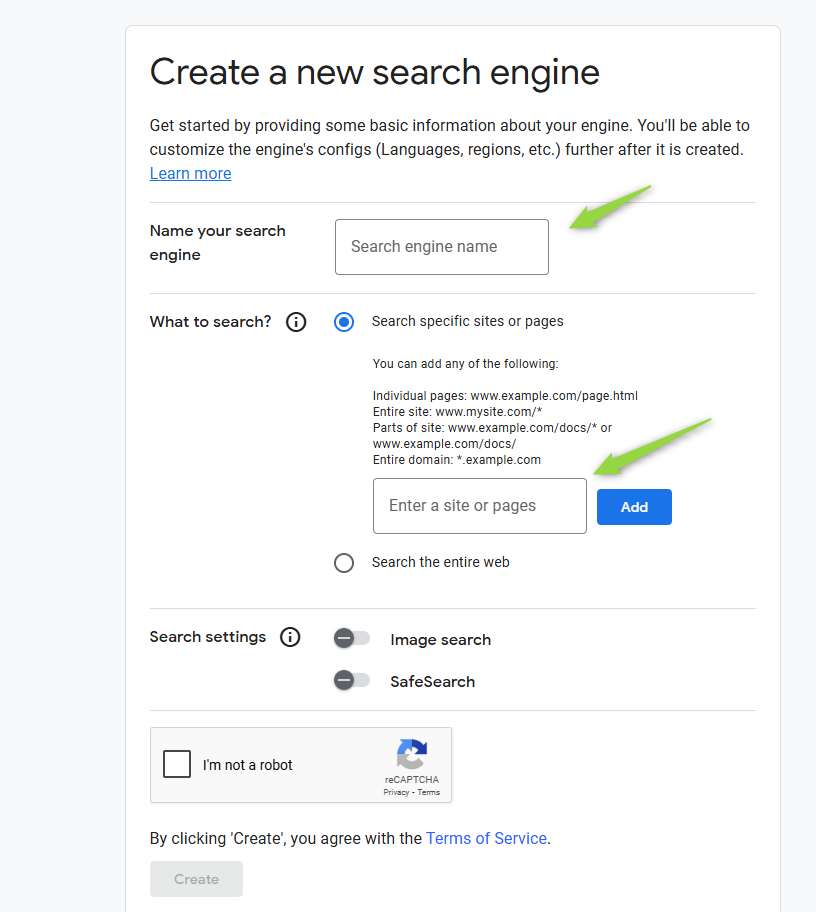 - Sites to search: Specify the websites or web pages you want your search engine to cover. You can enter specific URLs or entire domains. You can also choose to search the entire web if needed.