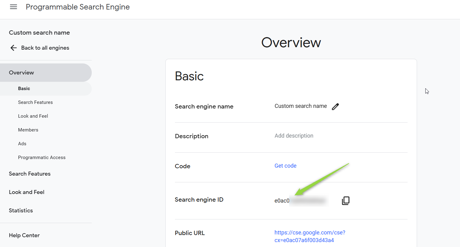 Get Custom Search Engine ID: Once your search engine is created, you will be provided with a Custom Search Engine ID. You can find this ID in the code snippet provided by Google or by clicking on your search engine in the Programmable Search Engine control panel.