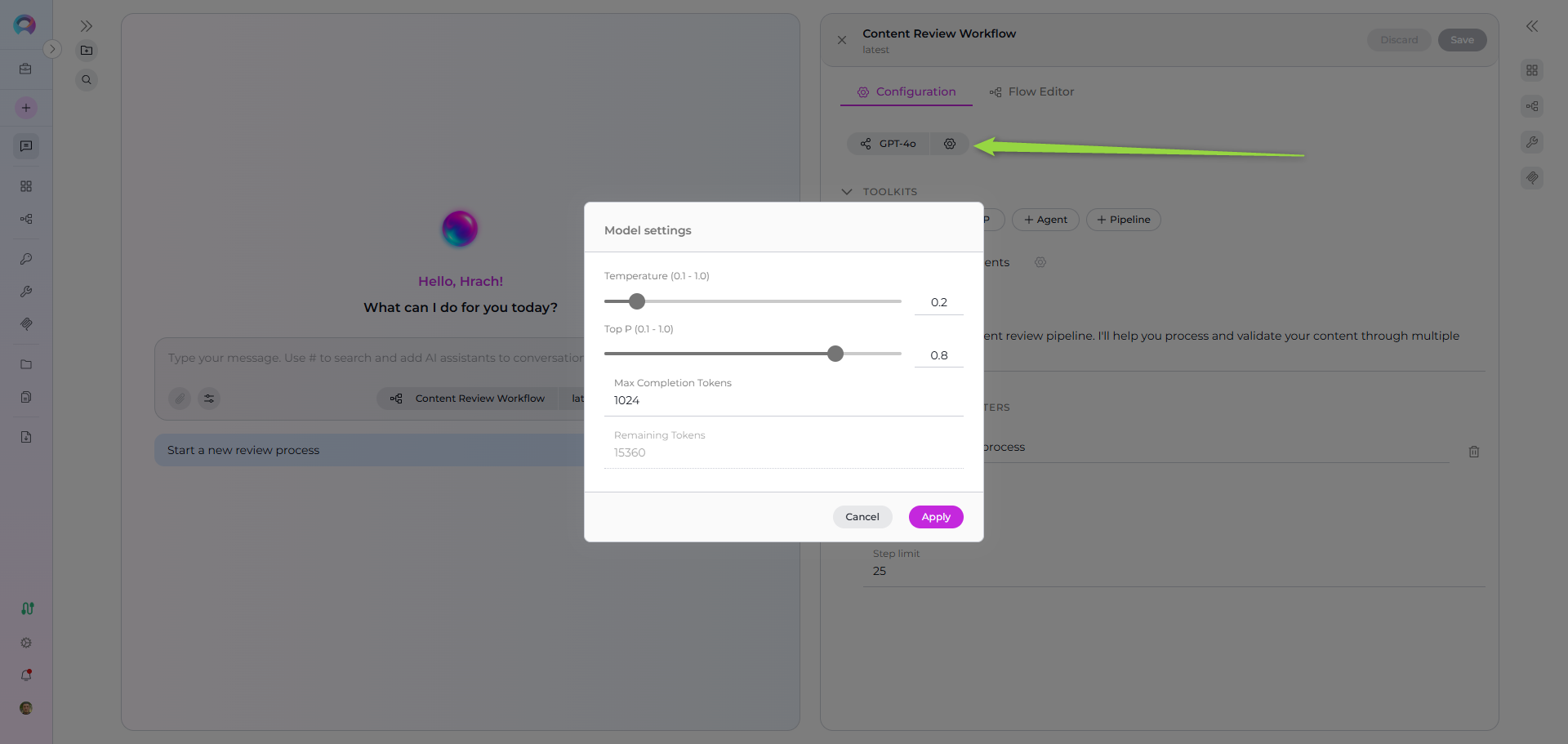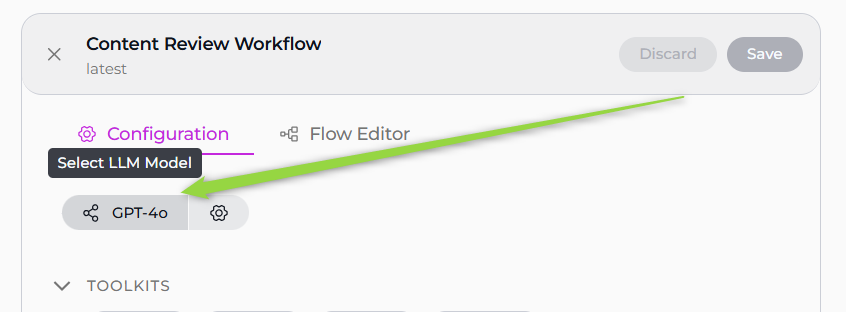 - Choose from available LLM models in your project (e.g., "gpt-4o", "gpt-4o-mini")