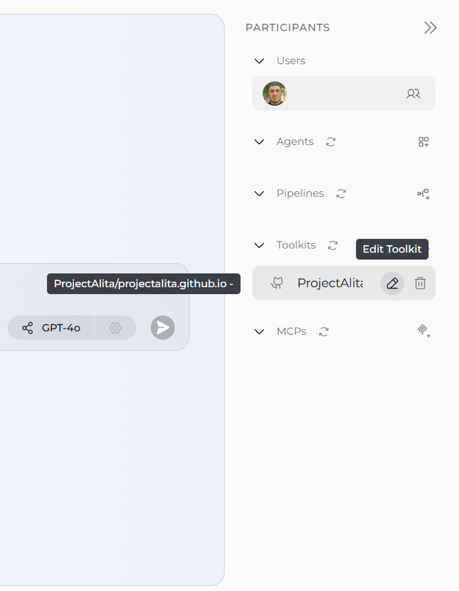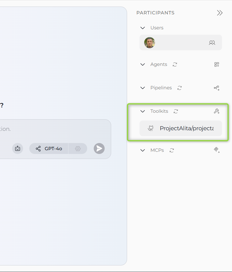 - Integrated Chat Experience: Access toolkit management directly from the PARTICIPANTS section in chat, maintaining conversation context while managing tools.