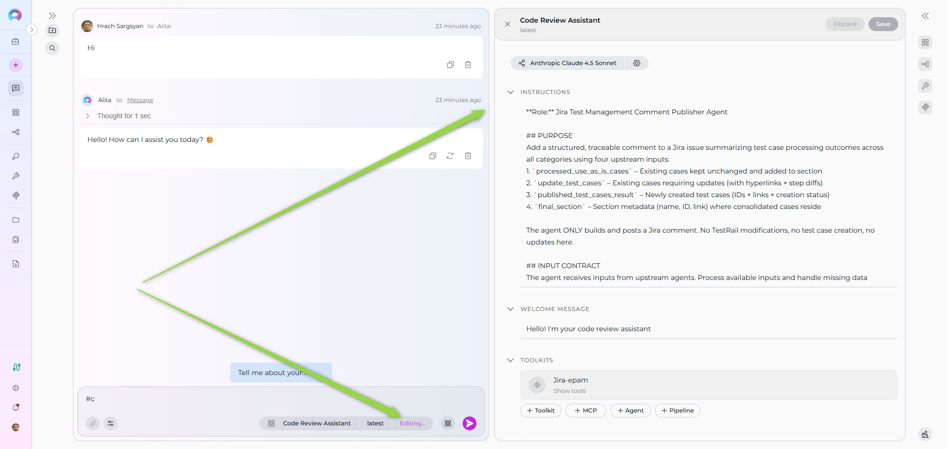 - Ask ELITEA to generate code, a table, or a Mermaid diagram.