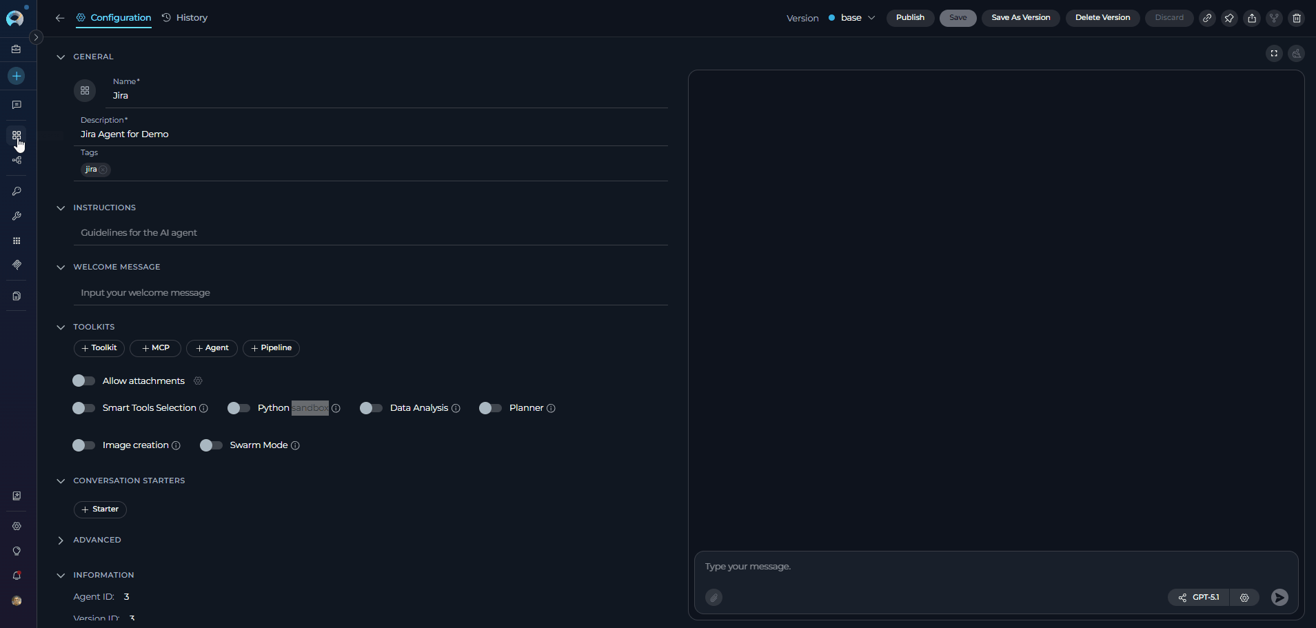 - New conversations created with this agent will have Python Sandbox enabled by default.