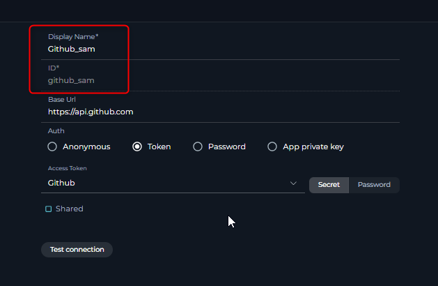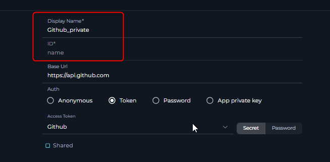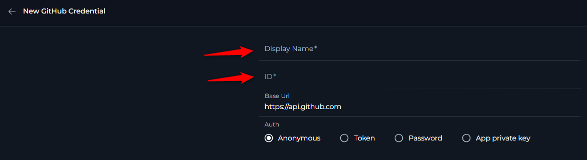 - ID: Must be unique within the scope and is used for programmatic references (e.g., "github_integration_token")