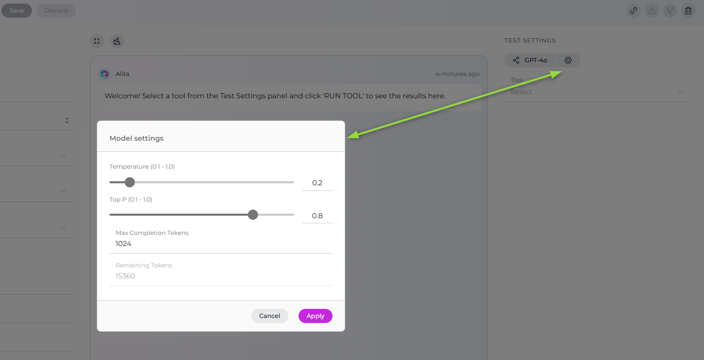 - Max Completion Tokens: 1024 (sufficient for most tool responses)