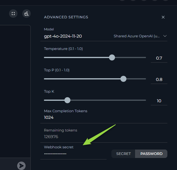 webhook_secretfield in your Elitea agent's settings. - Save your agent configuration.