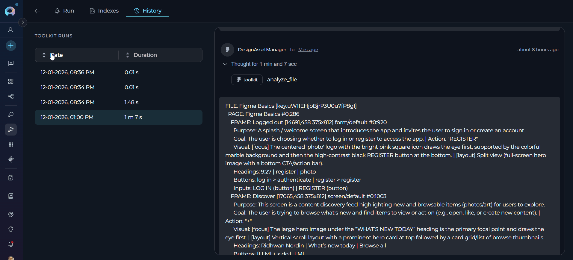 Left Panel: Run History List
