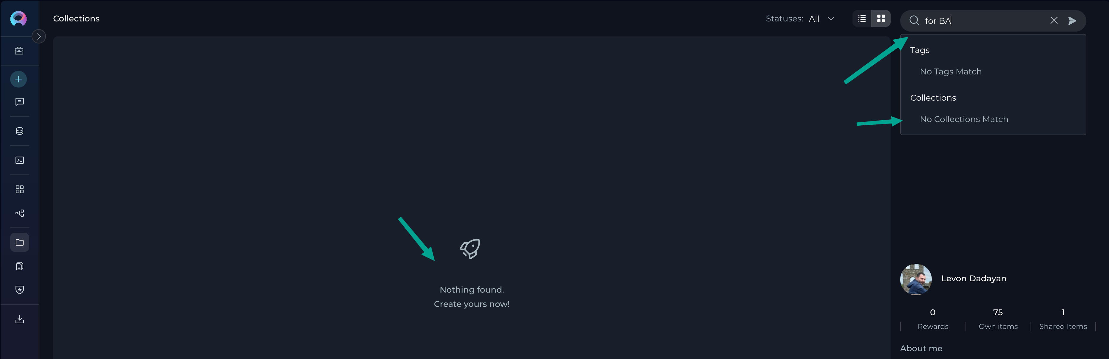 Whether you're in your Private workspace or any Team project, the search feature operates consistently, providing a unified experience throughout the platform.