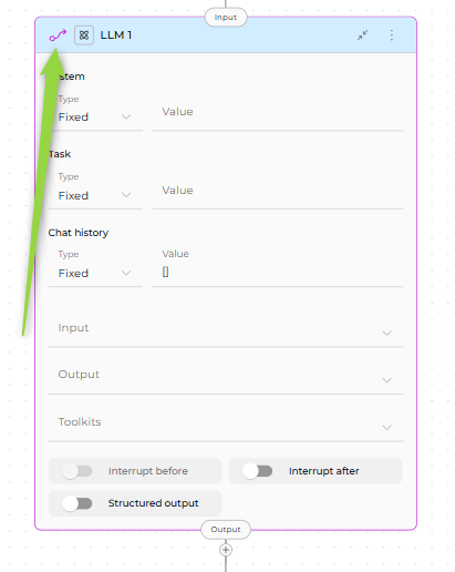 After making a node the entry point, an Input icon appears at the top of the node card, indicating it's the pipeline's starting point.