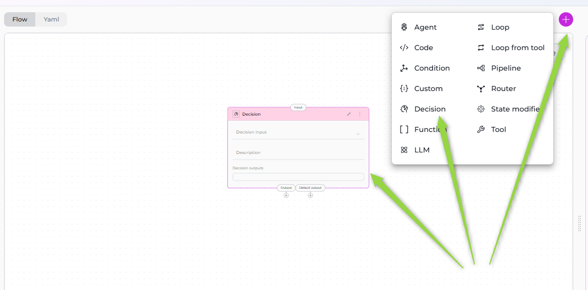 - Use Decision Node for Complex Routing: Choose when routing requires semantic understanding, not simple condition matching.