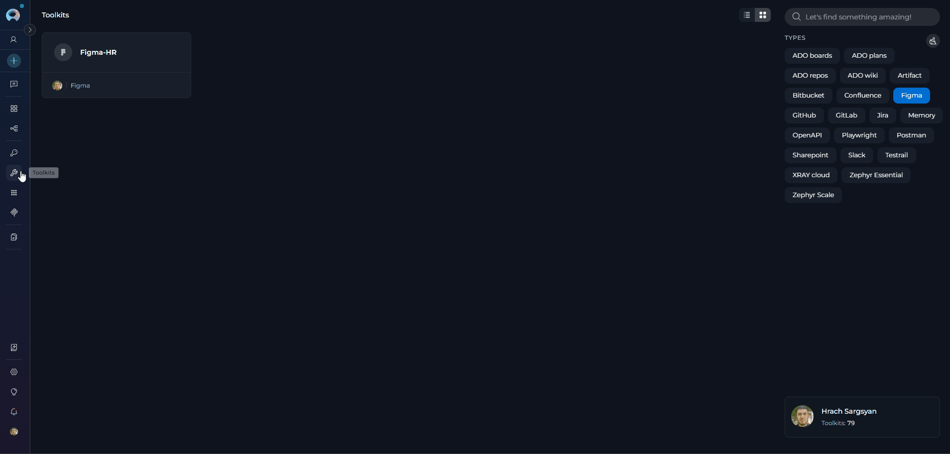- Navigate to Toolkits Menu: Open the sidebar and select Toolkits.