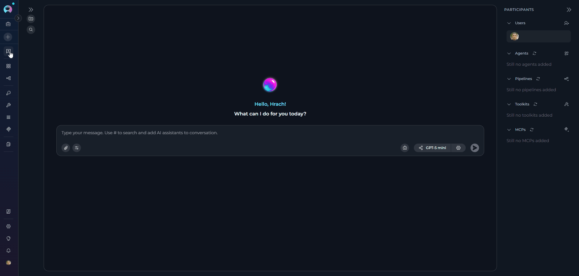 - Private Workspace: Credentials and toolkits are only visible to you.