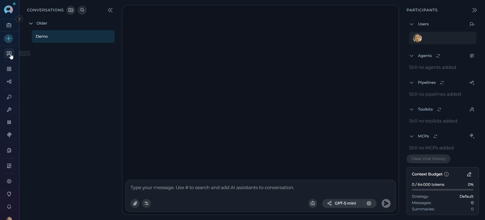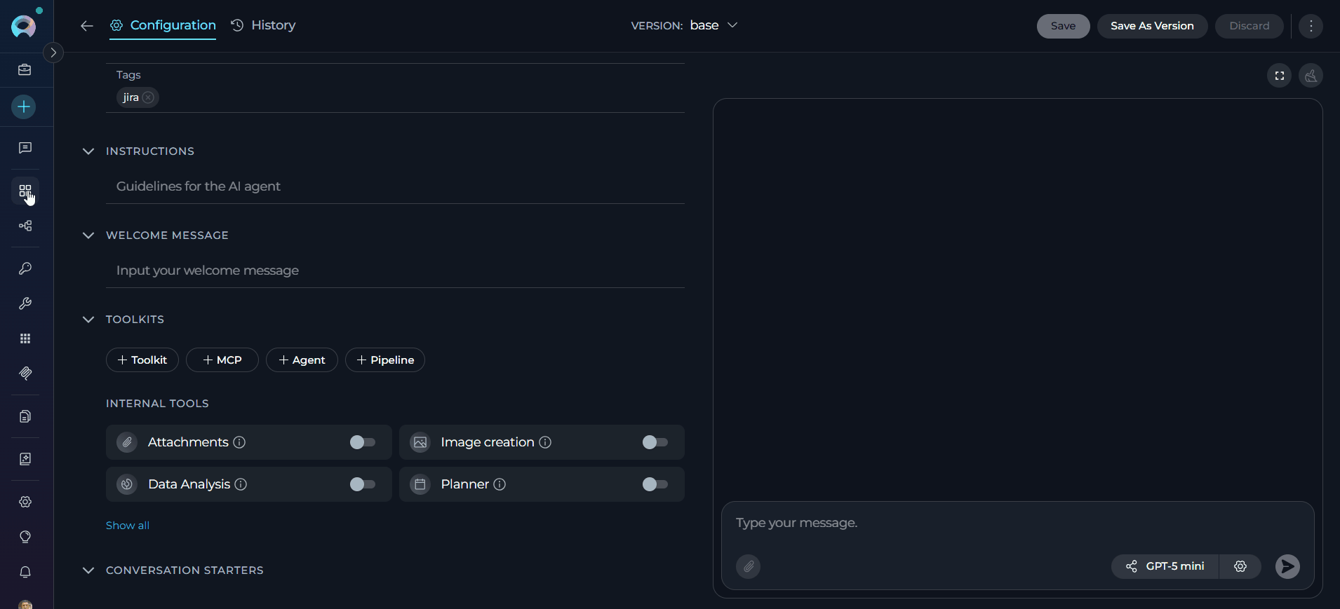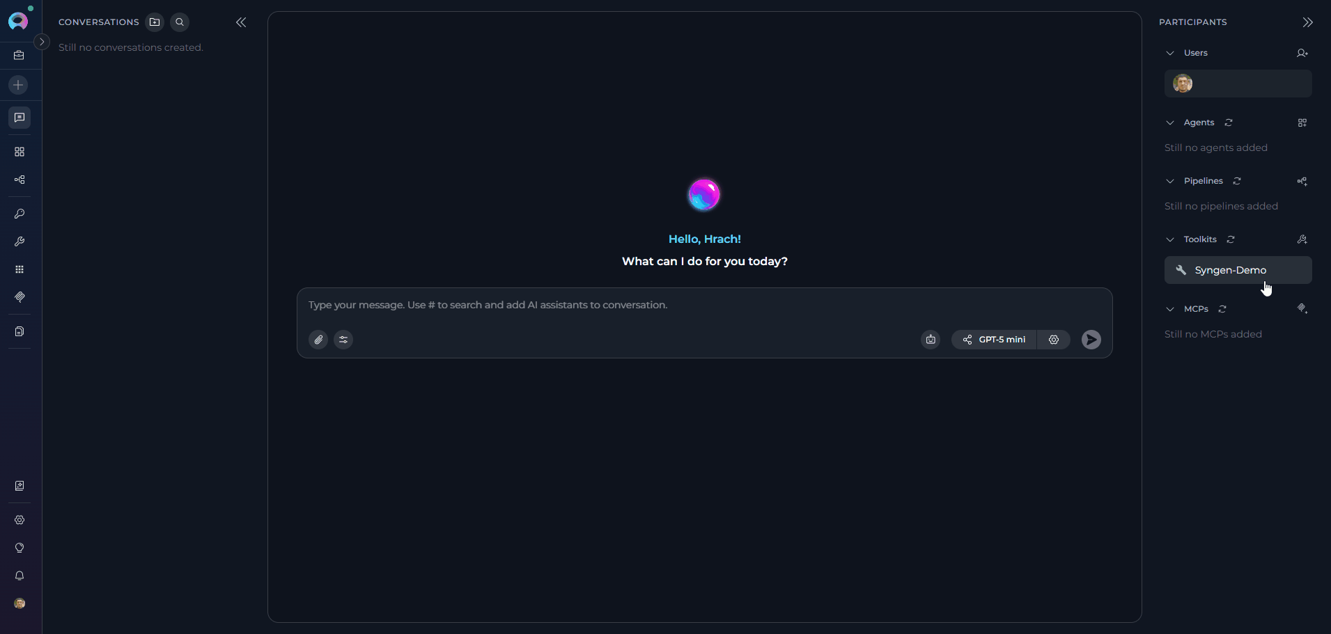 Once the toolkit is saved, you can add it to your agents, pipelines, or chat conversations.