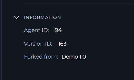 - Open the agent and select the version you want to fork using the version selector.