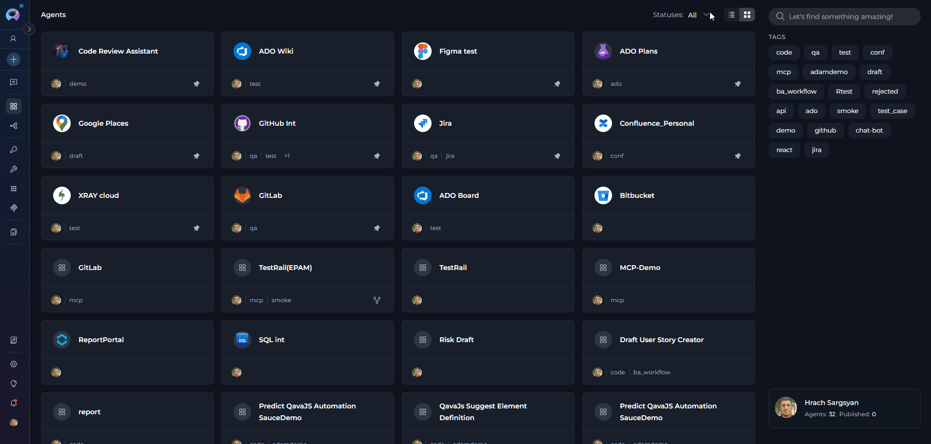 - Filter by Tags - Filter agents by their assigned tags to find agents in specific categories or with particular characteristics. Select one or multiple tags to narrow down the list.
