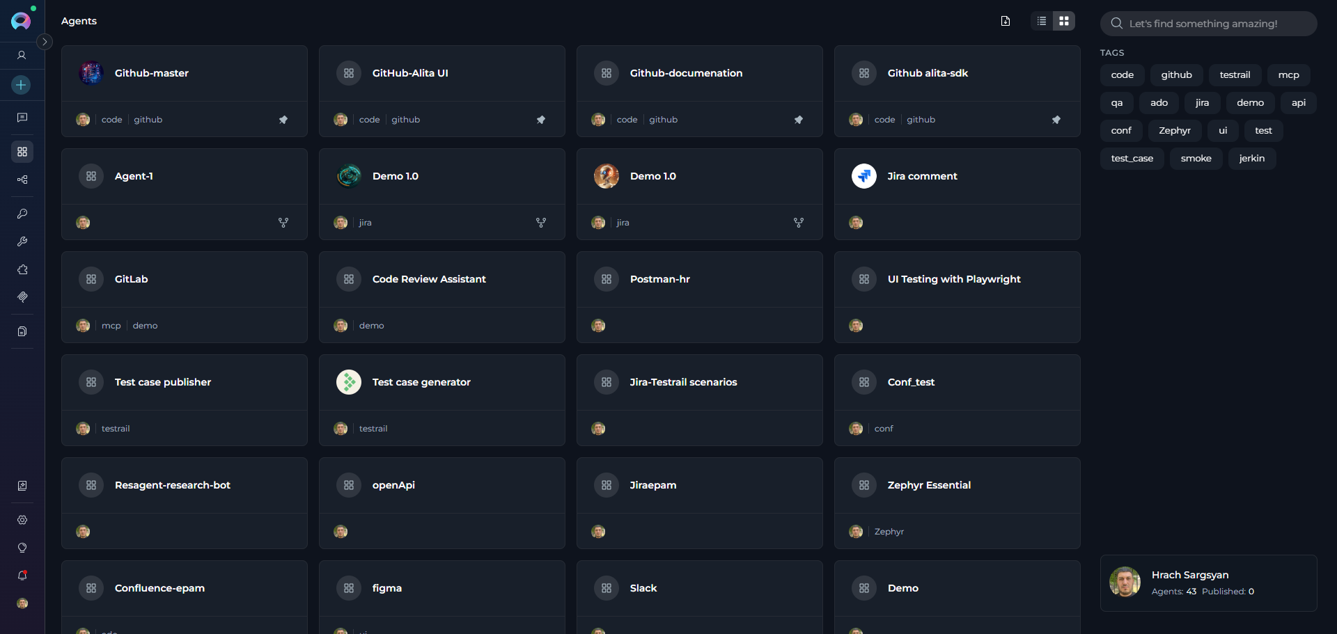 ELITEA Agents are customizable AI-powered virtual assistants that automate tasks and streamline workflows within the ELITEA platform. Each agent is purpose-built to handle specific tasks or workflows based on custom instructions, integrated toolkits, and AI model capabilities you configure. Agents can interact with external services, make intelligent decisions, and perform complex actions—from creating Jira tickets and managing GitHub repositories to analyzing data and generating documentation.