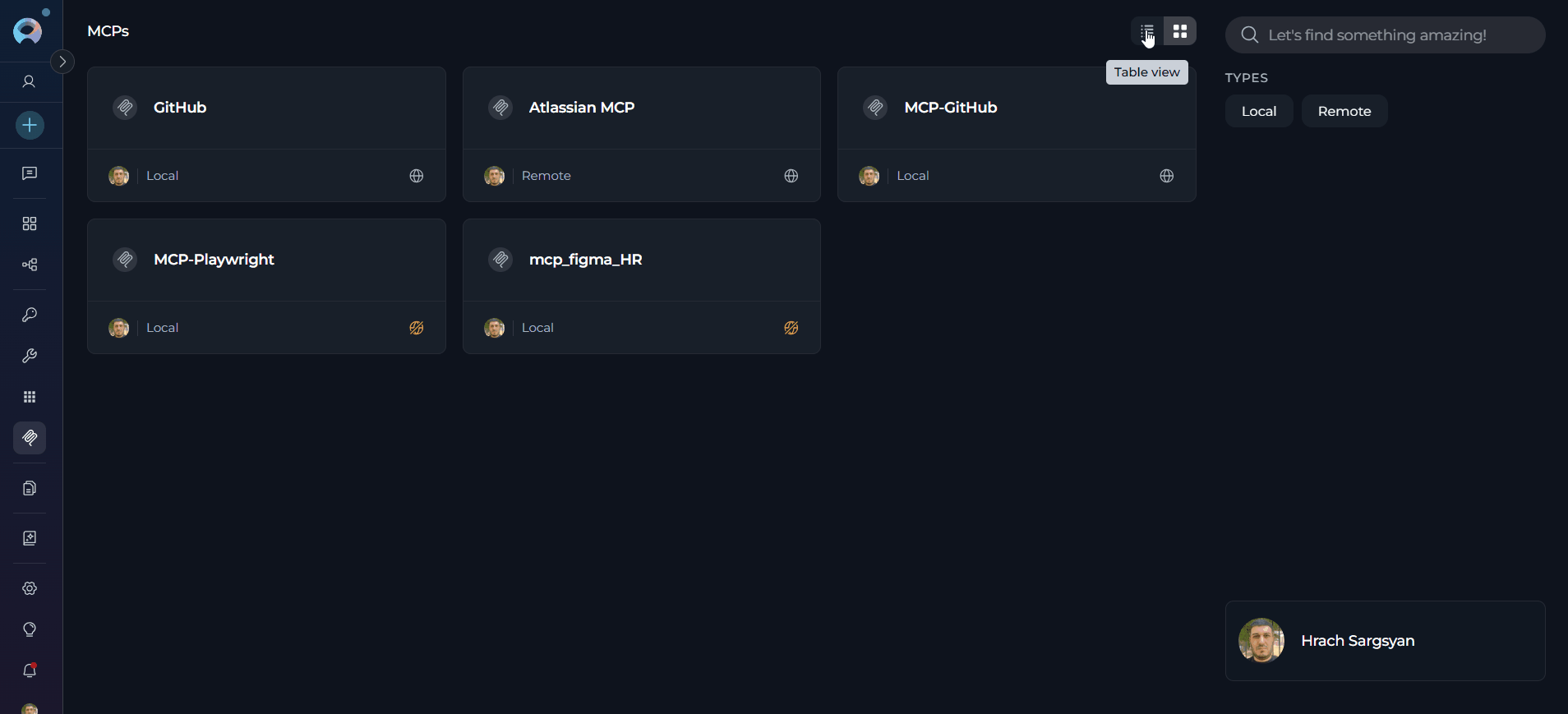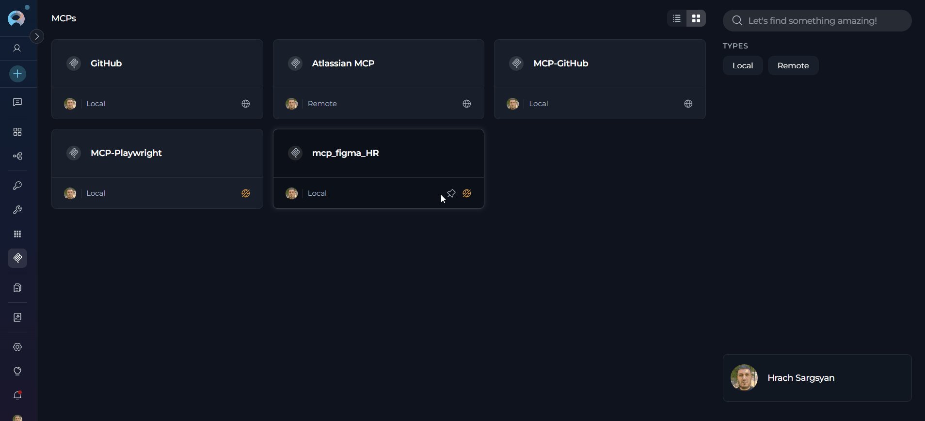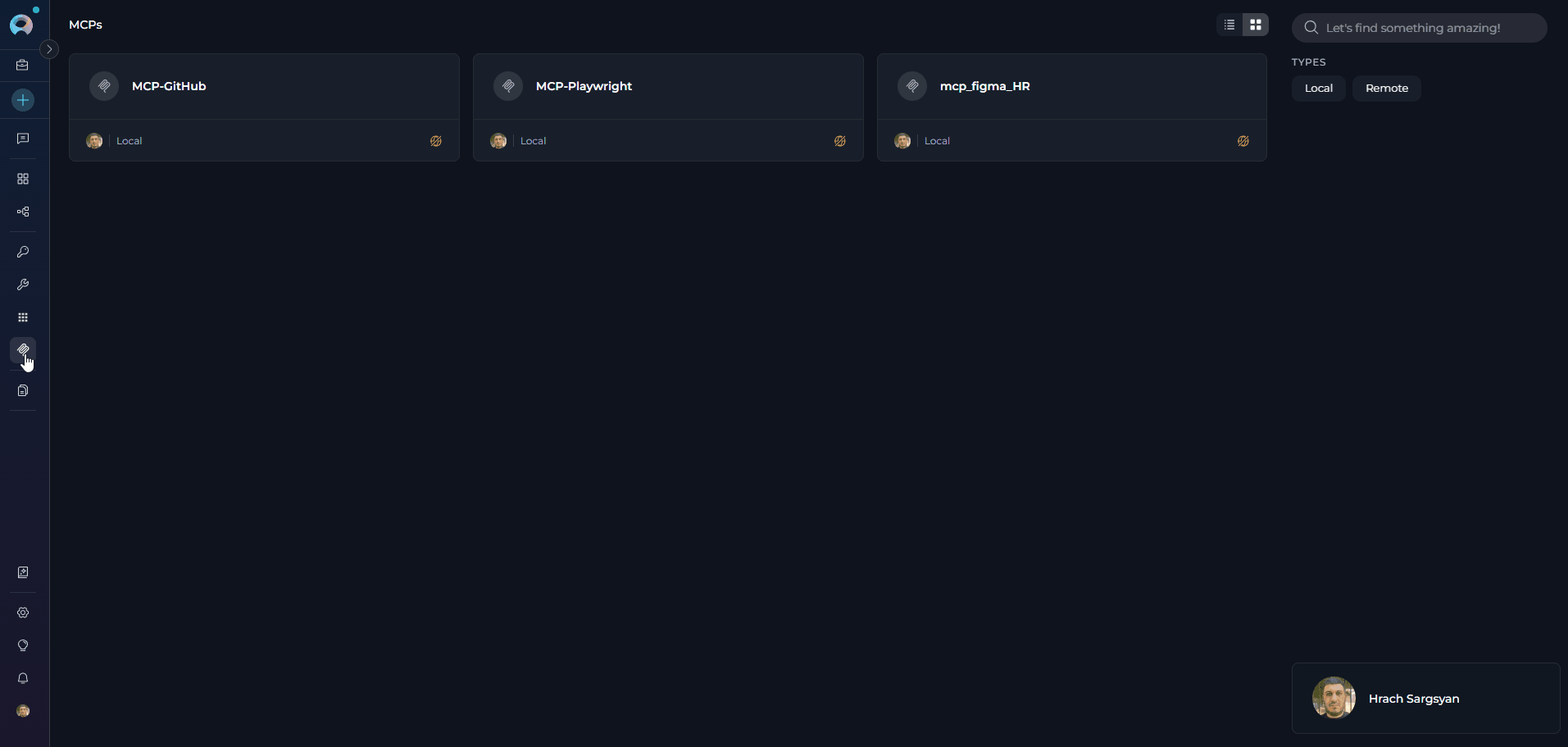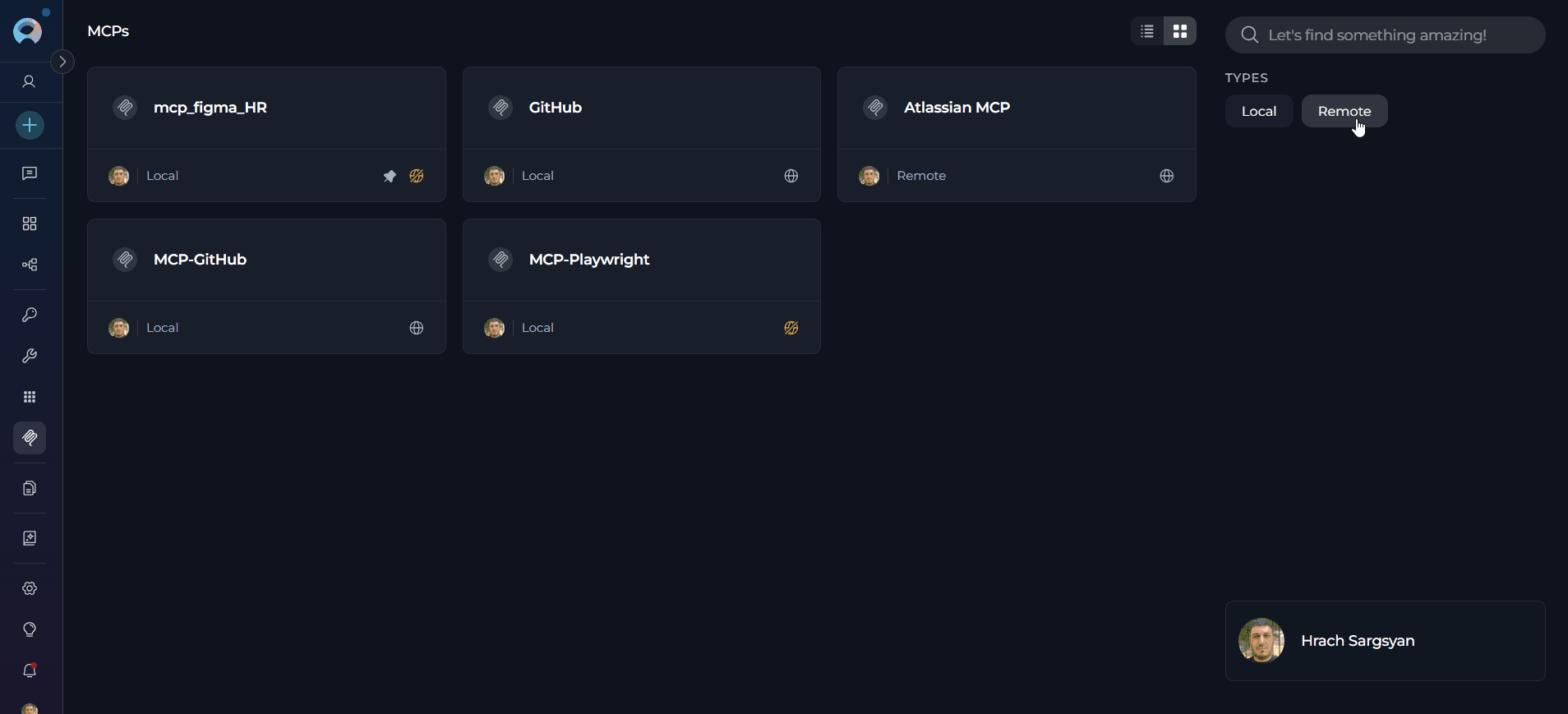 - Search and Filter: Quickly locate MCPs using the search bar or filter by type (Local/Remote).