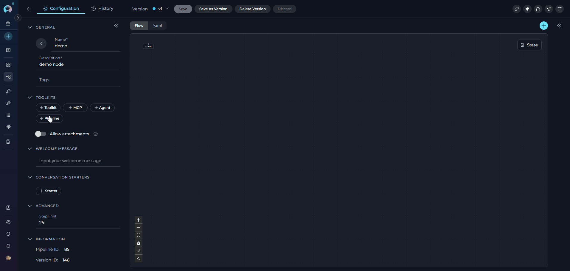 - Flexible Configuration: Toggle between visual Flow Designer and YAML Editor for different levels of customization