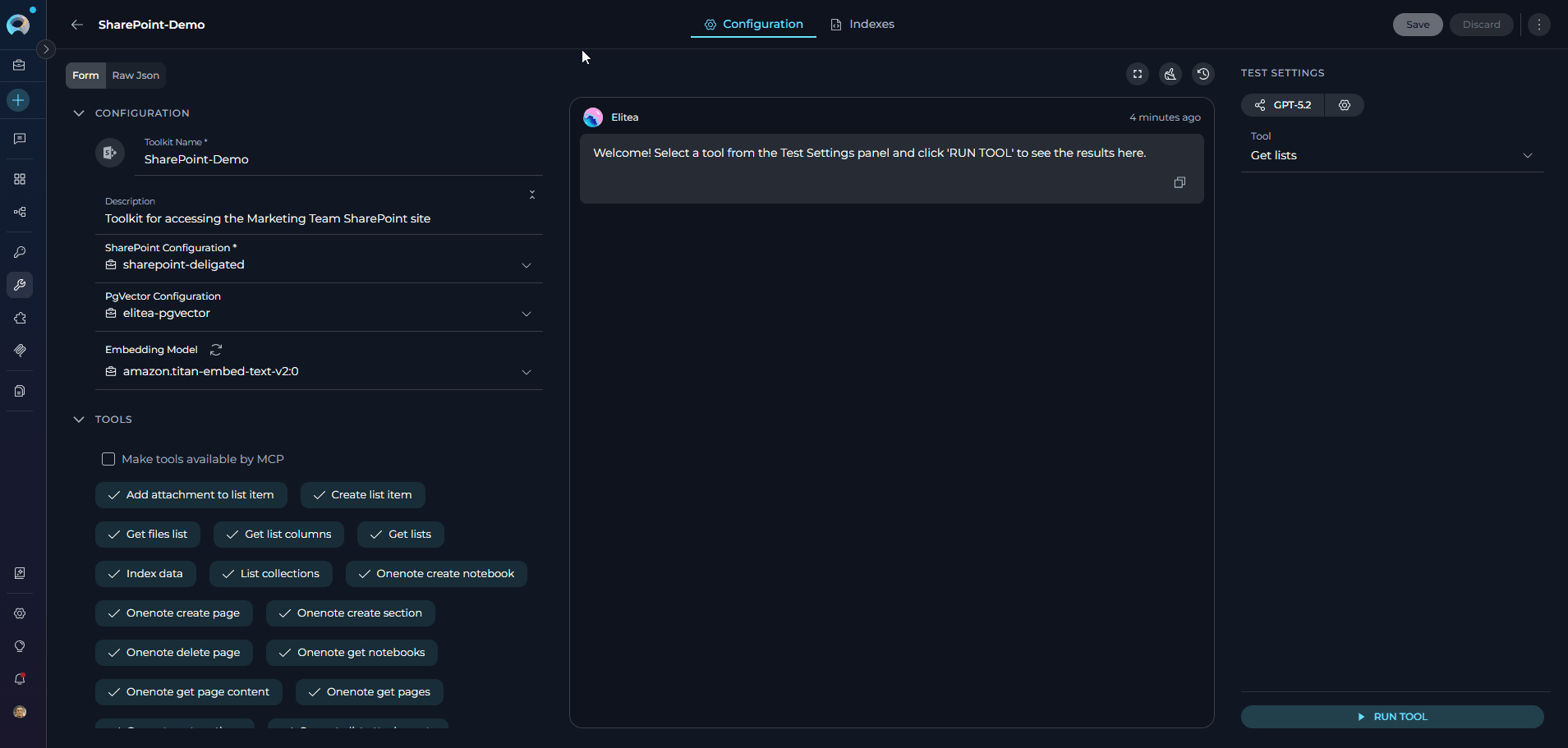 You can modify tool selection at any time by visiting the toolkit's detailed configuration page. This allows you to add or remove tools as your requirements evolve.