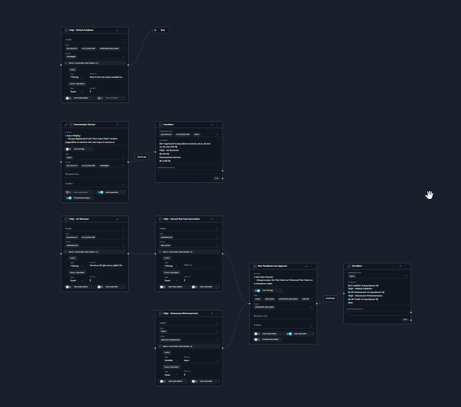 - Add a new Agent node type and integrate it into the flow (add all required connections).