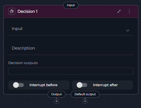 - Decision Node: Offers LLM-powered intelligent routing for complex decision-making scenarios that go beyond simple template-based conditions