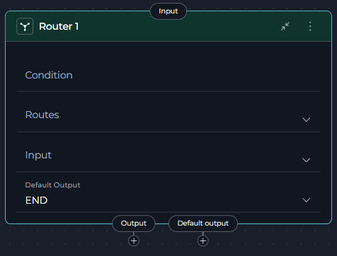 - Drag a connection from the previous node to the Router node's input handle