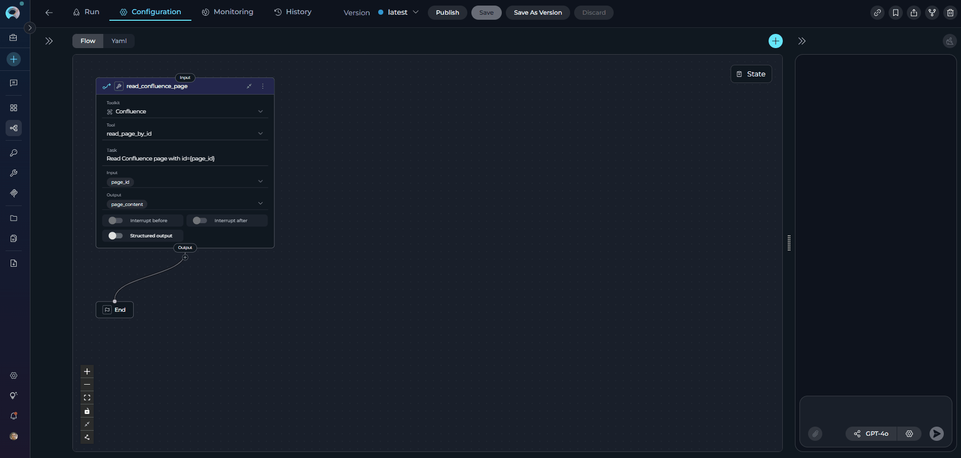 Add a new Toolkit node next to your existing read_confluence_page node in the Flow Editor.