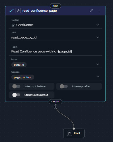 - Task: "Read Confluence page with id={page_id}" (Tool node specific field)
