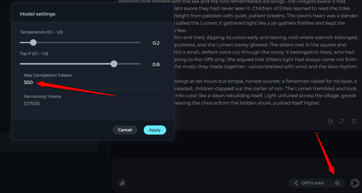 Solution: Check and increase the max completion tokens value in your agent configuration.