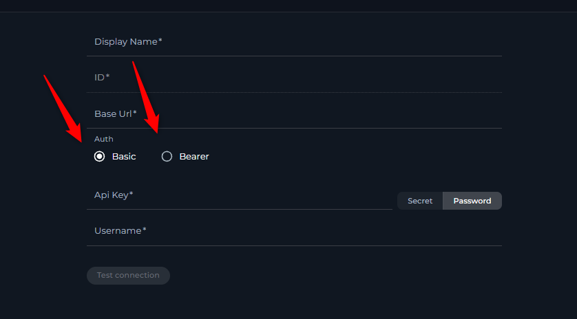 - Review All Fields: Carefully check all configuration sections, including: Basic configuration fields Advanced settings Authentication/credential fields Integration-specific parameters