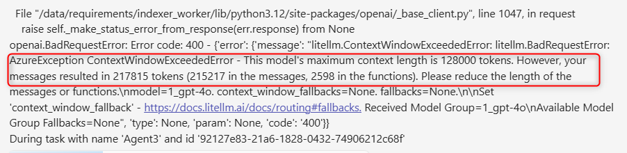 openai.BadRequestError: Error code: 400 - litellm.ContextWindowExceededError