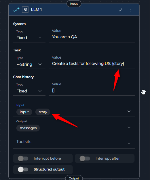 .... raise ToolException(f"LLMNode requires 'system' and 'task' parameters in input mapping. "